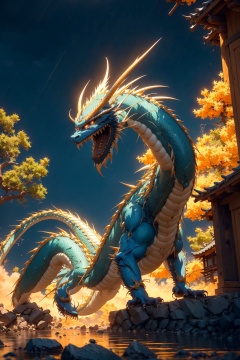(long:1.2), Hyper-detailled, 32k, Super High definition, Vibrant Colors, Soft focus, Ultra Smooth,Soft natural look, Full shot, photorealistic, realism, movie still, film still, cinematic shot, dreamwave, aesthetic, photo r3al, almost no light, (detailed background), outdoors, sky, cloud, tree, scenery, architecture, wide shot, pillar, eastern dragon, thedragon,r1ge,3DMM