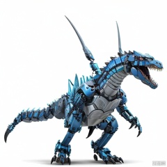solo, open mouth, simple background, white background, tail, wings, teeth, no humans, robot, sharp teeth, mecha, claws, science fiction, non-humanoid robot, dinosaur, mechanization