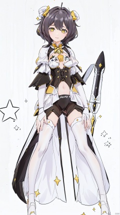 (masterpiece:1.3), (the best quality:1.2), (super fine illustrations:1.2), (Masterpiece), high quality, high detail, (white background:1.2), looking at viewer, (SOLO:1.4), outline, simplebackground, full armor, jegan,gundam,superrobet, fu hua,white skin, robot, A young girl,A girl,Two yellow sheep hor, magic girl sirin