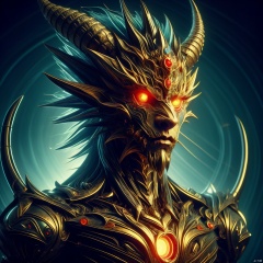 solo, looking at viewer, 1boy, horns, no humans, glowing, glowing eyes, monster