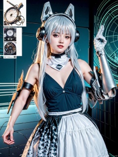 (masterpiece, top quality, best quality, official art, beautiful and aesthetic:1.2),anime artwork animated, tianqi,1girl,solo,long hair,looking at viewer,white hair,realistic,fake animal ears,mechanical wings, anime style, key visual, vibrant, studio anime, highly detailed