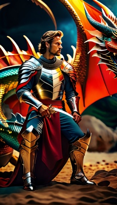 (((full_body portrait))), Photo of a knight and dragon, Hyper-detailled, 32k, Super High definition, Vibrant Colors, Soft focus, Ultra Smooth,Soft natural look, Full shot, photorealistic, realism, film still, cinematic shot, dreamwave, aesthetic, action_pose,Movie Still,photo r3al,gemsdragon