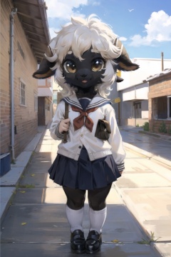 masterpiece,furry sheep girl,BlacknoseSheep,school_uniform,chibi