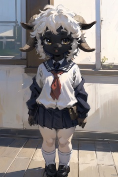 masterpiece,furry sheep girl,BlacknoseSheep,school_uniform,chibi,black face