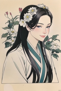 bgirl, 1girl, Exquisite facial features, looking-at-viewer, smile, hanfu, flowers, rock, leaf,<lora:EMS-275616-EMS:1.000000>