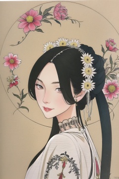 bgirl, 1girl, Exquisite facial features, wedding gown, looking-at-viewer, smile,  flower,  traditional media,  weapon,  painting \(medium\),  sword,  watercolor \(medium\),<lora:EMS-275616-EMS:1.000000>