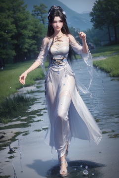 wanmei,qingyi,hanfu,1girl,solo,<lora:qingyi_v1:0.9>,<lora:add_detail:0.6>,looking at viewer,faye \(front innocent\),full body,((water drops)),wet clothes,((beautiful detailed water)),((floating)),dynamic angle,