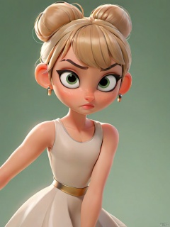 concept art pixar,3d style,masterpiece,best quality,good shine,OC rendering,best quality,4K,super detail,1girl,((full body)),looking at viewer,standing,shiny_skin,fair_skin,legs crossed, high-waisted leggings and crop top, Duchess, Tall, Athletic, Triangular Face, Fair Skin, White Hair, Hazel Eyes with Green Flecks, Short Nose, Pouty Lips, Receding Chin, Shoulder-Length Hair, Fine Hair, Ballerina Bun, augmented breasts, Stud earrings, berry metallic lipstick,light flesh hair,gyaru,absolute_territory,tight,spandex,shoes,kneehighs,glamor,dormitory,light grey background,clean background,straight_hair,hime cut, . digital artwork, illustrative, painterly, matte painting, highly detailed