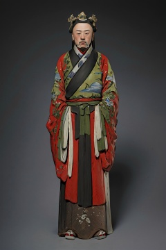 1boy,armor,baozi,chinese clothes,clay sculpture,earrings,facial hair,full body,gradient background,grey background,hanfu,holding,kp,long sleeves,male focus,music,robe,sandals,sash,simple background,sleeves past fingers,sleeves past wrists,solo,standing,traditional media ,<lora:kp_泥塑V2:0.8>, kp,clay sculpture,, masterpiece, best quality,