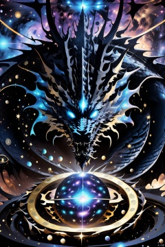 (close up:1.45),Dark ink version of Evil Dragon King, through black holes, illegal use of digital encryption technology, disrupt the digital realm of the universe and once, cross-chain information, digital currency, dark beam particles, (star vortex, star River, star ring :1.25), ultra HD, super detail, epic shock, visual art, surreal, BJ_Sacred_beast