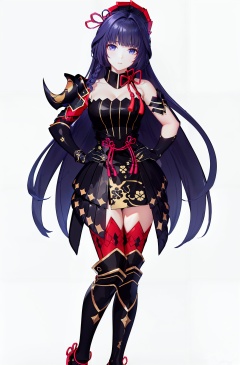 8k,best quality,masterpiece,(ultra-detailed:1.1),(high detailed skin),(full body:1.3),white background,standing,looking at viewer,(solo:1.4),hand on hip,<lora:yinwu-v100-000020:0.8>,yingwu,1girl,raiden mei,gloves,long hair,looking at viewer,gloves,thighhighs,dress,petals,purple hair,armor,bangs,(white background, simple background:1.6),(beautiful_face),((intricate_detail)),clear face,((finely_detailed)),fine_fabric_emphasis,((glossy)),full_shot,