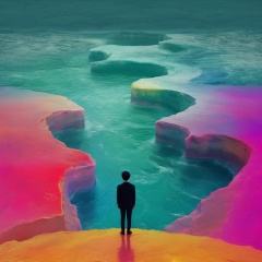 zailus,solo,short hair,black hair,1boy,standing,male focus,ocean,wide shot,colorful,surreal,<lora:lora-000008:1>,