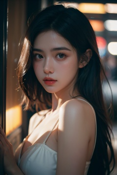 1girl, 20 years old, analog film photo, clear facial contour, upper body, looking at viewer, Beautiful dynamic dramatic dark moody lighting, volumetric, shadows, cinematic atmosphere, Octane render, 8K ,professional, highly detailed,desaturated, 35mm photo, grainy, vignette, vintage, Kodachrome, Lomography, stained, highly detailed, found footage, Leica 50mm f/1.8
