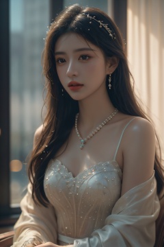 photographic of a girl, wet clothes,perfect face, beautiful face, fantasy, dreamlike, unreal, science fiction, lace, lace trim, lace-trimmed legwear, luxury, jewelry, diamond, pearl, gem, sapphire, ruby, emerald, intricate detail, delicate pattern, charming, alluring, seductive, erotic, enchanting, hair ornament, necklace, earrings, bracelet, armlet,halo,(((Best quality, masterpiece, ultra high res, (photorealistic:1.4), cinematic lighting, cinematic bloom))). BREAK, 35mm photograph, grainy, professional, 4k, highly detailed, bokeh
