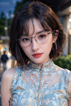 <lora:sdenginetask482:0.78>, sdenginetask482, best quality, hyper realism, (ultra high resolution), masterpiece, 8K, RAW Photo,1girl,,outdoor,walking in the street,stores,malls,crowedded street,fashion silk dress,(beautiful face:1.5),black glasses,Fukada