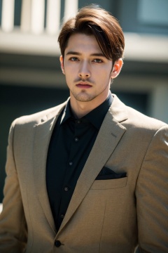 (best quality:1.4),(masterpiece:1.4),(photorealistic:1.4),(Realistic:1.2),(ultra high res, raw photo:1.4),(hdr, hyperdetailed:1.2),(8K:1.2),cinematic photo 1man,upper body,suit,