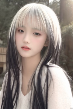 masterpiece, best quality, high_res, (Realistic:1.5), 1girl, white-black-hair, multicolor_hair