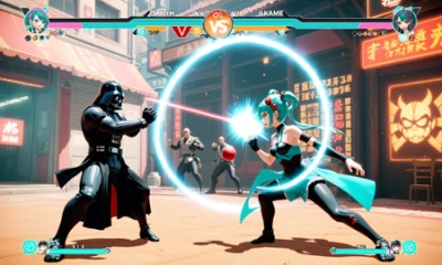 video game screencap, game ui, Darth Vader vs Hatsune Miku in Street Fighter V
