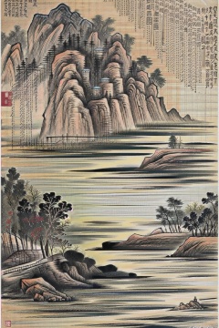 (best quality, masterpiece, ultra high resolution),depth of field,(day:1.2), (cinematic lighting:1.2), painting,lakeside,