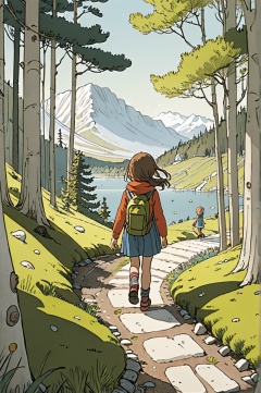 An illustration by Mattias Adolfsson, 1girl, outdoor, highly detail, UDH, fun, nature, full frame