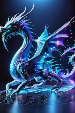 (((3D digital hologram))), a hologram dragon, digital_media_(artwork), programing world backgrpund, 3D Mesh,holomashdragon