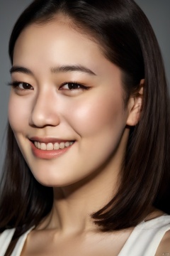 PHOTOREALISTIC REALISTIC, masterpiece, best quality, highres, ultra detailed, 8k,1woman,portrait,smile,aoiyu,flash photography