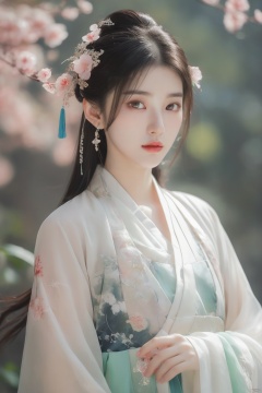arien_hanfu,1girl, solo, flower, long hair, black hair, hair ornament, (big breasts:1.39),hair flower, blue|green eyes, floral print, chinese clothes, looking at viewer, detached sleeves, upper body, white flower, parted lips, dress, pink flower, china dress, bare shoulders, blush, red flower, eyelashes, white dress, lips, sleeveless, parted bangs, grey background, gongzhuqie, neon_dress,huansha, glowing,lens flare,big leaf,plant, wind, chang,(big breasts:1.66), light master, MAJICMIX STYLE