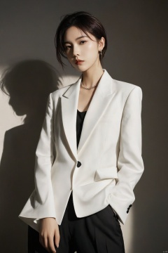 (((magazine cover: 1.4641))), magazine cover, poster, 1girl, full_body_shot, photography_studio, dramatic_photoshoot, high_contrast_lighting, dark_background, androgynous_style, tailored_suit, crisp_white_shirt, black_tie, fitted_jacket, wide_leg_pants, sleek_ankle_boots, slicked_back_hair, bold_eyebrow_arch, smoky_eyes_makeup, minimalist_jewelry, power_pose, hands_in_pockets, sharp_profile, standing_on_platform, strong_posture, shoulders_back, textured_fabric, clean_lines, buttoned_up_look, deep_gaze, fashion_forward, contemporary_portrait, cinematic_lighting, dynamic_shadows, modern_fashion_photography