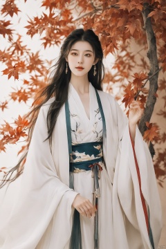 Fashion editorial style a asian girl with hanfu ruqun,Jin style, joint brand, ribbon, Withered leaves, old vines, plant illustration, splash ink,High fashion, trendy, stylish, editorial, magazine style, professional, highly detailed, cinematic lighting, Dramatic lighting