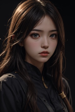 (highly detailed),(solo),(1girl),(shinegoldeneyes),(longliverhair),(expressionless),(dark background),(dramatic lighting),depth of field,