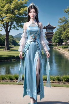 CAFC,1girl,solo,long hair,earrings,jewelry,hair accessories,full body,suburban scenery,east asian,chinese style architecture,<lora:NSFWFilter:-1.5>,