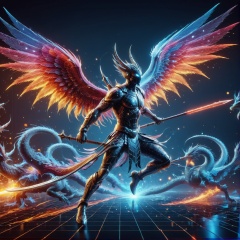 (((full_body shot))), solo, Photo hologram 3dmash of a warrior with a spear is battling a big dragon have pair of wings, action_pose, holomashdragon, ,3D Mesh, highly detailed, hyper realistic, with dramatic polarizing filter, vivid colors, sharp focus, HDR, UHD, 64K, 16mm, color graded portra 400 film, remarkable color, ultra realistic,