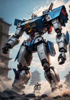 ,,Full-length photo,Fighting posture, , Surrealism, from below, Nikon, Surrealism, backlighting, 8k, super detail, high quality, high details, UHD, award winning, textured skin, anatomically correct, Real, shanhaijing, BJ_Gundam_SDXL, juemei,solo, juemei,Metallic texture, juemei, mecha_robot, cyborg, Light master