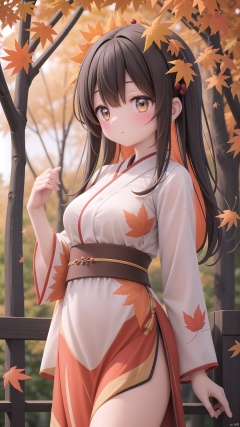 (a serene autumn scene:1.2), a digital artwork depicting a Tian Qi girl in the midst of a maple leaf forest duringtheseasonof"立秋" (beginning of autumn), enveloped in a soft and elegant color palette, illuminated by a fresh and gentle light, (highly detailed:1.1), showcasing the intricate details of the Tian Qi girl's appearance and the delicate veins of the maple leaves, (tranquil ambiance:1.2), immersing the viewer in the peaceful atmosphere of the autumn forest, (Tian Qi grace:1.1), as the girl exudes an aura of grace and serenity amidst the falling maple leaves, (soft golden sunlight:1.1), casting a warm glow on her ethereal features and illuminating the vibrant hues of the autumn foliage, (dynamic composition:1.1), capturing the captivating presence of the Tian Qi girl within the enchanting maple leaf forest, inviting viewers to embrace the beauty and tranquility of the autumn season, as they witness the harmonious dance between the Tian Qi girl and the swirling maple leaves, creating a moment of serene tranquility and poetic charm.