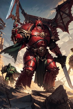 animal,armor,bow (weapon),cape,fangs,gauntlets,green eyes,gun,helmet,holding,holding gun,holding sword,holding weapon,kp,mace,monster,multiple boys,power armor,realistic,solo,spikes,staff,sword,teeth,watermark,weapon,<lora:kp_战锤插画V1:0.8>, kp,