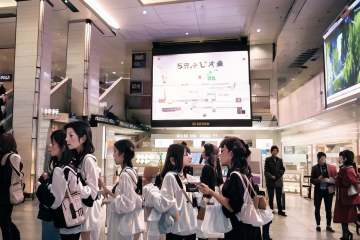 best quality, ultra-detailed, illustration,umedabm, scenery, multiple girls, realistic, bag, crowd, 6+girls, multiple boys, black hair, real world location, long hair, 6+boys, indoors, ceiling, ceiling light <lora:umeda_bigman_SD15_V1:1>
