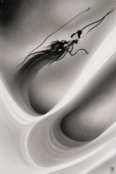 A majestic Chinese dragon depicted in ink, showcasing its intricate details and flowing movements. The artwork is presented in monochrome and greyscale, exuding a timeless and traditional atmosphere. The dragon emerges from wispy clouds, creating a sense of mystique and grandeur. The composition focuses solely on the dragon itself, with no inclusion of human figures. The artwork is bordered with delicate patterns, paying homage to fine art parodies. The dragon is portrayed as an Eastern dragon, capturing the essence of Chinese mythology and culture. Its expression is intense and enigmatic, reflecting its mythical nature. (best quality,4k,8k,highres,masterpiece:1.2),ultra-detailed,(realistic,photorealistic,photo-realistic:1.37), HDR, UHD, studio lighting, ultra-fine painting, sharp focus, physically-based rendering, extreme detail description, professional, vivid colors, bokeh. Art Style: Fine art, Traditional, Eastern, Mythical Color Palette: Monochrome, Greyscale Lighting: Soft, diffused lighting emphasize, Chinese Dragon