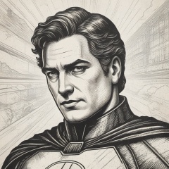 superman, close-up,etching, thick line outline,minimalism,convex plate printing, flat illustration, retro, black and white, artistic, rich texture details