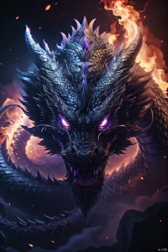 Black Dragon\(pi\),  breathing fire,  no humans,  dragon,  claws,  open mouth,  fire,  glowing,  sharp teeth,  eastern dragon,  teeth,  horns,  scales,  tongue,  glowing eyes,<lora:EMS-280677-EMS:0.800000>