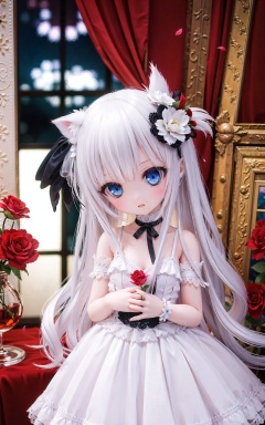 (1girl,very long hair,cowboy shot,animal,animal on head,cat,animal,animal on head,cat,animal,animal on head,cat:1),(4349,4349,4349:1),dress,heterochromia,blue eyes,long hair,flower,hat,rose,white dress,ribbon,petals,looking at viewer,white headwear,hair ornament,blue flower,hair ribbon,blue ribbon,blue rose,bangs,blush,cover,dress,heterochromia,blue eyes,long hair,flower,hat,rose,white dress,ribbon,petals,looking at viewer,white headwear,hair ornament,blue flower,hair ribbon,blue ribbon,blue rose,bangs,blush,cover,dress,heterochromia,blue eyes,long hair,flower,hat,rose,white dress,ribbon,petals,looking at viewer,white headwear,hair ornament,blue flower,hair ribbon,blue ribbon,blue rose,bangs,blush,cover,
