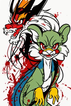 solo, open mouth, red eyes, teeth, pokemon \(creature\), no humans, blood, motion blur, dragonCluttered lines,<lora:蔚蓝Blue水彩泼墨(1):0.8>,