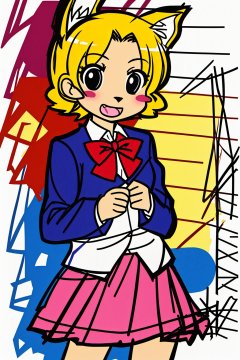 1girl, solo, skirt, shirt, animal ears, standing, sketch, blush stickers, furry, pink skirt, graffiti, buck teethCluttered lines,<lora:蔚蓝Blue水彩泼墨(1):0.8>,