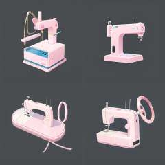 a pink sewing machine with a blue ribbon on it's side and a blue bow on the side, simple_background, ribbon, weapon, grey_background, no_humans, phone, cellphone, blue_ribbon, black_background, smartphone, still_life, objectification,(top quality, best quality, official art, graphic design),(best quality, masterpiece:1.2),(((solid color background))),<lora:游戏图标研究所ICON:0.5>