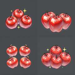 three red apples with a black background and stars around them, with a gray background and a black background, simple_background, food, shiny, grey_background, no_humans, sparkle, fruit, apple, food_focus, still_life,(top quality, best quality, official art, graphic design),(best quality, masterpiece:1.2),(((solid color background))),<lora:游戏图标研究所ICON:0.5>