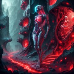 ,, VascularTech, scifi, inner glow, bones ,synthetic girl , full body, on a hill, long hair, epic scenery