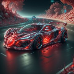 ,, VascularTech, scifi, inner glow, bones ,car, on a highway