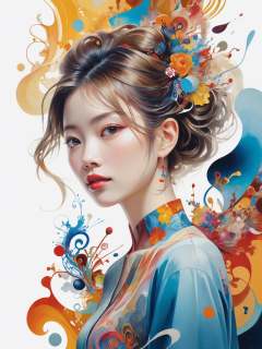 a girl formed of colored glaze,looking at viewers,coloured glaze,official art,unity 8k wallpaper,ultra detailed,beautiful and aesthetic,masterpiece,best quality,(zentangle, mandala, tangle, entangle),(fractal art:1.3),one girl,1 face,extremely detailed,dynamic angle,cowboyshot,the most beautiful form of chaos,elegant,a brutalist designed,vivid colours,romanticism,by james jean,roby dwi antono,ross tran,francis bacon,michal mraz,adrian ghenie,petra cortright,gerhard richter,takato yamamoto,ashley wood,atmospheric,ecstasy of musical notes,streaming musical notes visible,white background,ink,scenery,gorgeous asian girl,