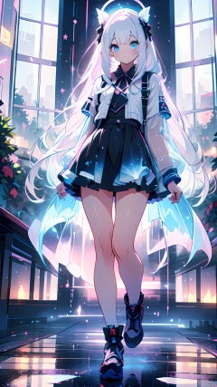 masterpiece,best quality,highres,1girl,very beautiful and cute,star \(symbol\),floral print,Hourglass body shape,very long hair,mini_skirt,prefect leg,leg_lift,((white hair)),garden