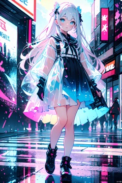 Best quality,masterpiece,transparent color PVC clothing,transparent color vinyl clothing,prismatic,holographic,chromatic aberration,fashion illustration,masterpiece,girl with harajuku fashion,looking at viewer,8k,ultra detailed,pixiv