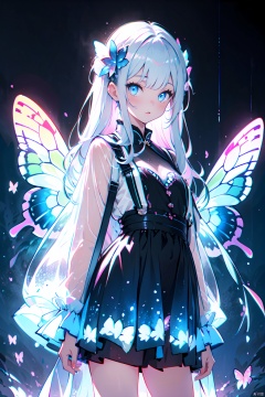 masterpiece,best quality,photorealistic,Multicolored,1girl,solo,realistic,Light background,Transparent plastic flower,Luminescent, Lin Yueru,(butterflies:1.5),long hair,(cat:1.2), Dragon, Chinese girls